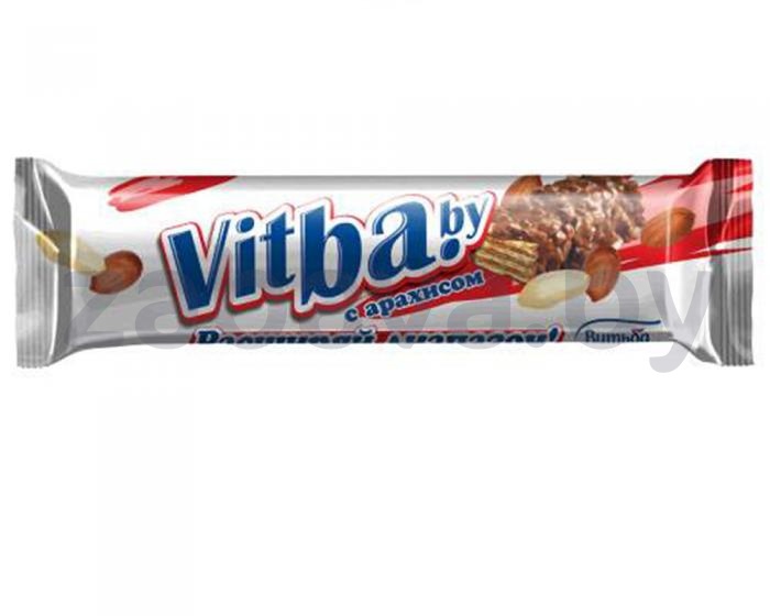 Страна производства:Беларусь Торговая марка:Витьба Масса / Объем:0.037 кг Пищевая ценность на 100 г Белки 9 Жиры 31 Углеводы 44 Энергетическая ценность 490 ккал/ 2060 кДж Описание Краткое описание Многослойный хрустящий в молочной глазури с арахитсом. Состав кондитерская глазурь молочная (сахар, заменитель какао масла, сухой молочный продукт, какао порошок, сыворотка сухая молочная, эмульгаторы (лецитин и Е 476), ароматизатор, идентичный натуральному («молоко-ваниль»)), мука пшеничная высшего сорта, арахис обжаренный дробленый,, жир кондитерский, сахар, хлопья кукурузные «Золотистые» (крупа кукурузная, соль йодированная), сухой молочный продукт, крахмал картофельный, какао порошок, масло растительное, эмульгатор (лецитин), соль йодированная, разрыхлитель (сода пищевая), ароматизатор, идентичный натуральному («ванилин»). Не содержит ГМО.